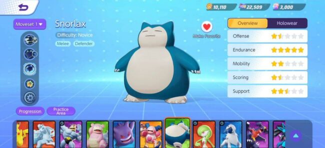 Statistics in Pokemon Unite are measured in stars. Here’s the star ratings of Snorlax: