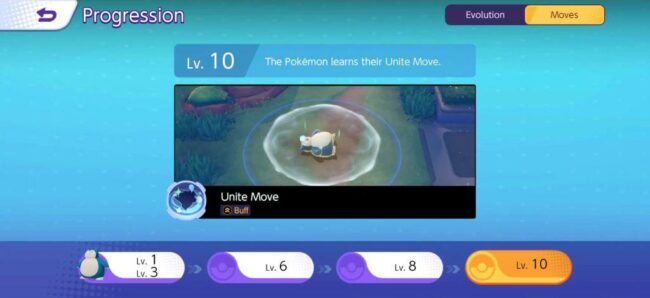 - Unite Move (Buff): Has the user fall asleep and begin to snore, dealing damage over time to opposing Pokemon the area of effect while restoring the user’s HP. Using certain moves while asleep allows the user to roll over, dealing further damage to opposing Pokemon in the area of effect.