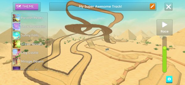 You can create tracks yourself using the drag and drop track editor that you unlock in the game and share your creations with the world and maybe even have them featured in multiplayer battles.