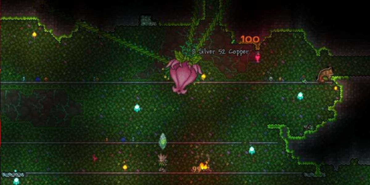 To get Pygmy Necklace in Terraria, players have to defeat Plantera Boss in the Underground Jungle area. Once that is done, the Pygmy Necklace is available at Witch Doctor NPC for 20 Gold Coins at night.