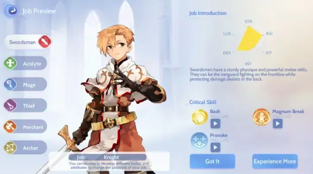 Picking the right stats to spend points on is important. Some stats are not useful to a class who prefers to be at the frontline like the Swordsman. INT is mainly for magic-focussed heroes, and although VIT may be useful for the max. HP boost, it is not what we would recommend spending the majority of the points on. Instead, a Swordsman should be spreading their Attribute Points on DEX, STR, and AGI.