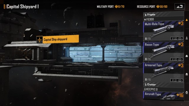 A ‘Destroyer Dockyard’ is needed so players can build this class of warships. There are seven models with multiple variants.