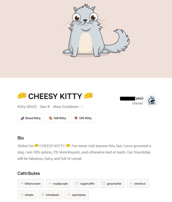 And people are buying these with real money because… why not? They’re collectible, they are rare (because even breeding them costs a bit of money) and they are insanely cute. I already have two kitties and you can check out the stats of one of them below: