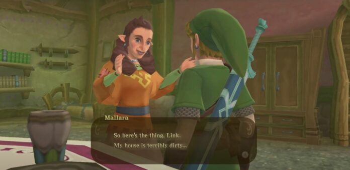 The Cleaning Pipit’s House side quest is a very short quest that becomes available right after obtaining the Gust Bellows. Once you do, enter the red house on the eastern side of Skyloft and talk to Mallara, who will ask for Link’s help to clean the house, as she is not able to do so herself properly. After agreeing to help, use the Gust Bellows on pretty much everything you see in the house.