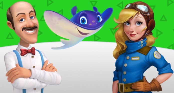 All four games feature IP characters with distinctive personalities, such as farm animals from TownShip, clownfish from Fishdom, and Austin the butler from Gardenscapes and Homescapes.