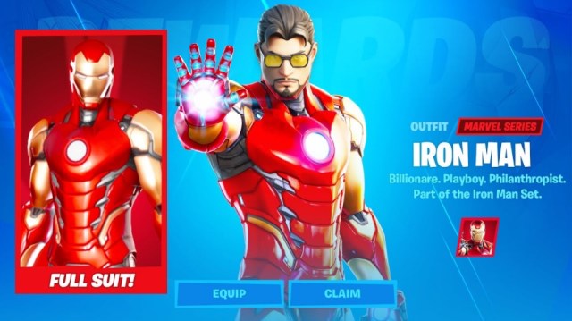 This Marvel skin was available to unlock in Chapter 2 Season 4’s Battle Pass, which costs 950 V Bucks. Getting to level 93 unlocked Tony Stark, and then players needed to unlock the Suit Up emote at level 100.