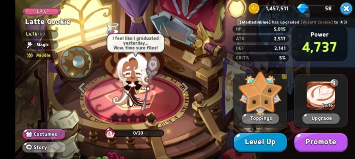 Latte Cookie is another Epic Magic Cookie that is frequently used. She was introduced into the game along with the Cream Puff Cookie. Latte Cookie shares the ‘On a Graduation Day’ bond with the Cream Puff Cookie and Almond Cookie.