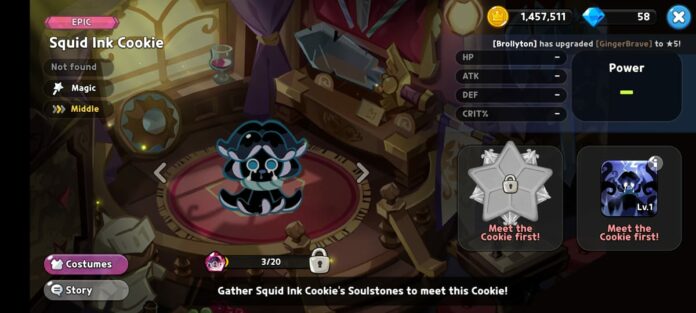 The Squid Ink Cookie has a special attack called ‘Ink Tentacle Slap’. Just like the name suggests, the Cookie’s tentacles appear out of the blue and slaps the enemy to deal damage. The best toppings for Squid Ink Cookie would be Searing Raspberry and Swift Chocolate.