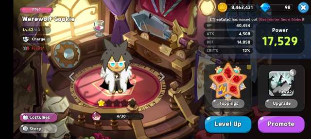 The Werewolf Cookie is another shape-shifter Cookie in the Charge Class. During the attack, the Cookie can turn itself into a wolf and charge at the enemies. In wolf form, the Cookie deals 2x damage and has more HP. The Werewolf Cookie causes massive area damage. If you are in the early game, then this is the best Charge Cookie.