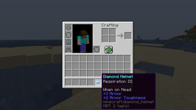 Respiration is another helmet enchantment to help players in underwater exploration. With Respiration, players can stay inside water for a longer time. Each level of Respiration adds 15 seconds of extra breathing time. This enchantment has a max level of three.