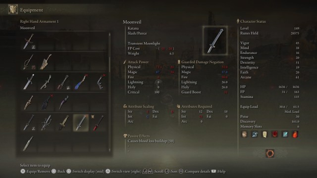 Practically, it is a great weapon to deal with mobs, and if built correctly, you can even use the Magic and Bleed damage that it inflicts to take down every boss in the game with ease.