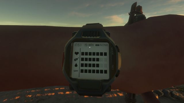 Every time something requires your attention, your watch will beep, so make sure to be listening for it. If your character is behaving oddly or if something is draining your health, check your watch, as it’ll tell you what’s going on.