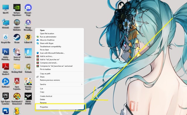 Right-click on the Tower of Fantasy desktop icon and select Properties. If you are on Windows 11, you first have to click “Show more options” and then “Properties.”