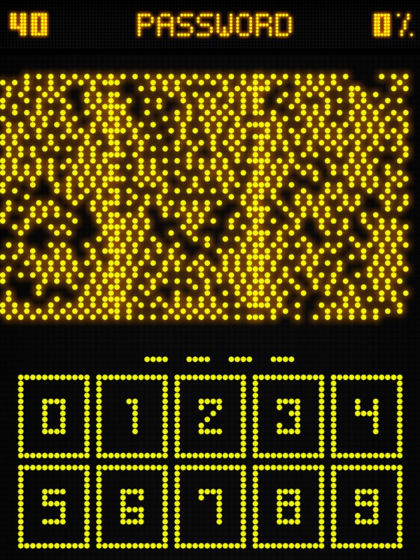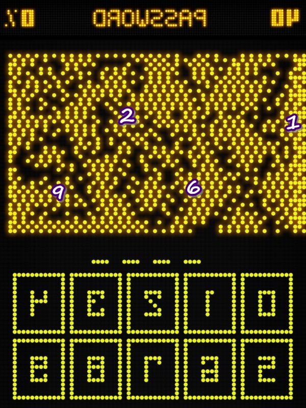 Look closely at the numbers that you have at the base of the screen and you will notice that some of the squares have 1, 2, 3 or 4 orange dots on them. That is your password: the number with 1 orange dot is the first you have to use, the one with 2 dots is the second and so on.
