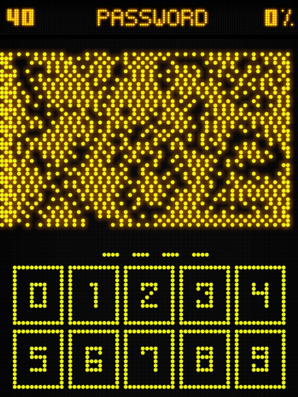 This one is pretty tricky, but doable. If you quickly tap with 2-3 fingers (or swipe your finger over) the top left area of the screen, you will see that the pixels that your taps create have an area that remains blacked out. Eventually, you will be able to see that there’s a number there. That’s your first number of your password. Continue doing this to the right and you will reveal the rest of the numbers. The password is always different.