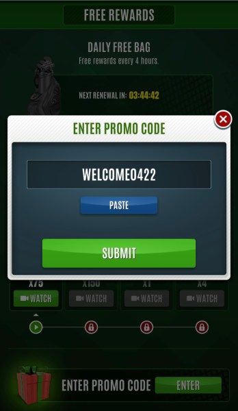 - Tap ENTER PROMO CODE;