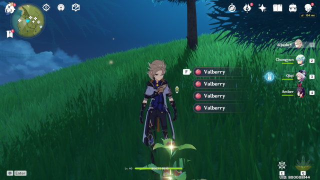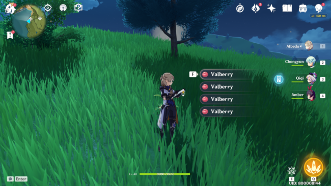 Players can buy five Valberry from Chloris the Botanist near Windrise in Mondstadt. Chloris only appears between 6:00~19:00 – before or after that players cannot find her at the usual location.