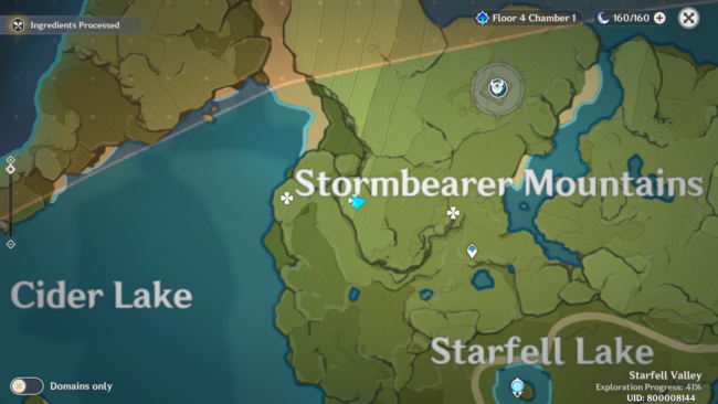 To get another four Valberry, move straight towards the first ‘r’ of Stormbearer – for reference check out the player icon in the below Genshin Impact map.