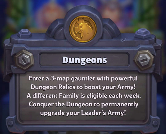 Each week, a different Faction is featured in the rotating dungeons, and only leaders from that Faction can enter. However, you can enlist troops from any Faction to join your leader’s army.