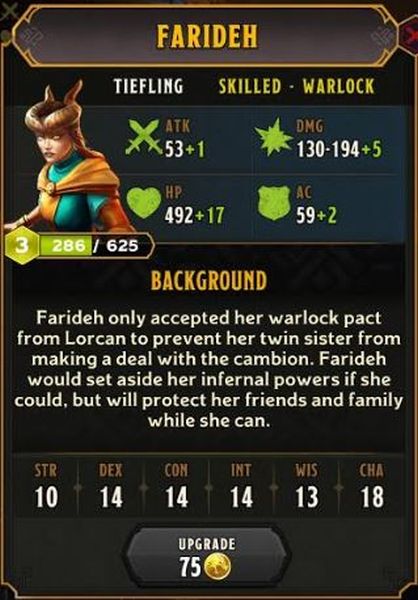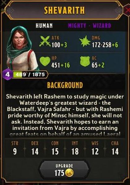 Shevarith is another one of the characters I am mainly using, and I also have her at level 4 because of the huge amounts of damage she inflicts.