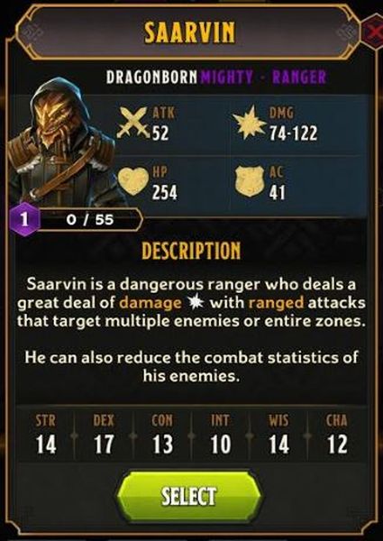 Saarvin is a pretty good hero for my team, and I mostly use him to debuff the enemies and boost my main team member’s attack (Shevarith’s). He is pretty good if you want constant reliable damage, and also some support (no, no healing involved – just debuffs)!