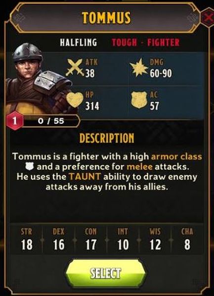 Tommus is basically the tank of the group, who has a high STR and AC, so he can be a good addition to a team which needs that. I have not unlocked him yet, so I can’t really say for sure, but here is his overall info: