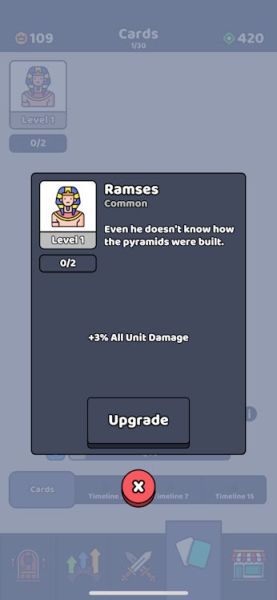 This is why that you should focus on unlocking new units and evolving, because you’re going to lose your other upgrades anyways. The only thing that persist between eras are your cards.