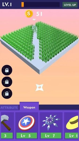 This is a great way of “playing” the game when you can’t really play because of reasons, so you can just let it run on its own. The game will automatically shoot out the weapons to chop all the grass on the screen, and aim it well also! You will however have to tap on the boxes once they appear on the screen, else it will not progress.