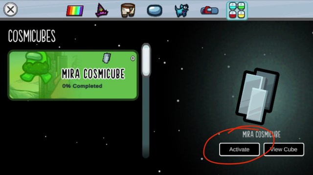 Cosmicubes are pathways full of cosmetic items for you to unlock as you play. Each individual Cosmicube holds a cosmetic item and can only be unlocked using a specific Pod. These Pods are earned while you play a game of Among Us, and only if you have activated that specific Cosmicube. For instance: if you want to unlock a cube in the Mira Cosmicube path you must first activate it before starting a game. Find this option in the Wardrobe, or in the Store.