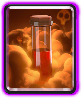 Poison was initially based on the eponymous spell that was released in Clash of Clans, even sharing the same sound effects and sprites. In Clash Royale, unlike its CoC counterpart, Poison does affect buildings, possesses no damage-scaling effects, and does not affect the opposing troops’ attack speed.