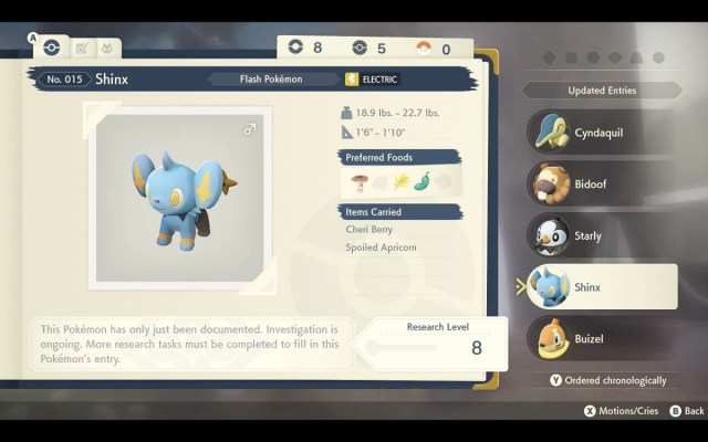 The game keeps it interesting and engaging for players, and encourages them to work towards completing the Pokedex without it feeling like a repetitive grind. The mechanics of discovering, battling, and catching Pokemon is fresh and new, and not every Pokemon requires battling in order to capture them. Some Pokedex entries require the player to complete unique tasks, only available once you have caught a specific Pokemon. Until that task is unlocked, it will say “Method Unknown.”