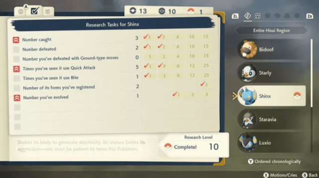 In Pokemon Legends: Arceus, if you simply see and catch a Pokemon, it will not consider as having that Pokemon’s Pokedex entry completed. In order to fully complete a Pokedex entry, you need to earn ten points in a Pokemon’s Research Level.