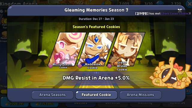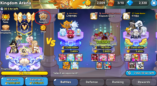 To find the Arena-featured Cookies, simply head over to the Kingdom Arena. Then, all you have to do is select in the Arena Seasons option, as highlighted below.