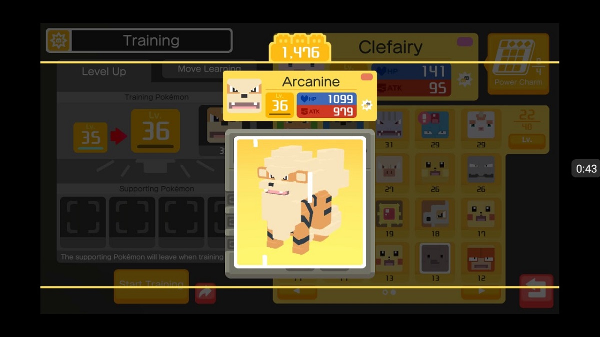 In Pokémon Quest, Growlithe does not need the use of a Fire Stone to evolve as it does in the mainline Pokémon games. In fact, all the player has to do here is to get Growlithe to level 36 and it will evolve into the highly coveted Arcanine!