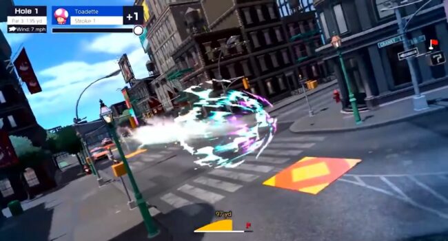 The New Donk City course is the brand new course introduced by the 2.0.0 update. This course, based on the location with the same name seen in Super Mario Odyssey, is a short course with 18 holes all rated Par 3. The course also features two difficulty levels, Amateur, and Pro, which completely change tees and greens of all 18 holes.