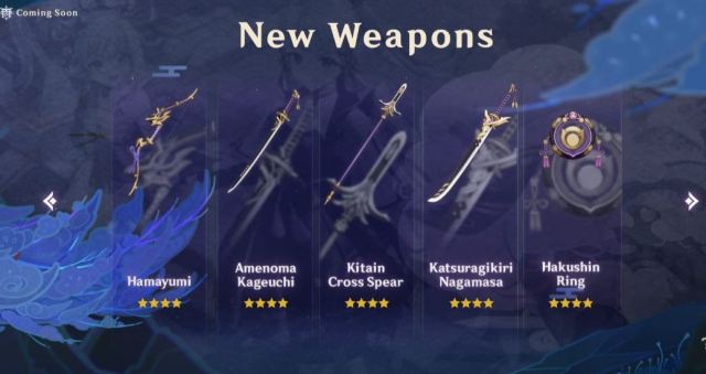 • Yoimiya – Four-Star Pyro user whose weapon of choice is a bow.