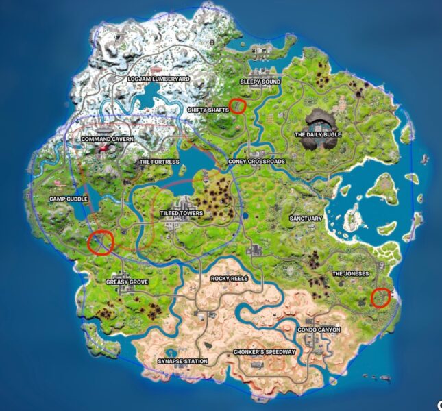 The Stormtrooper Checkpoints are located east of Shifty Shafts, south east of The Joneses, and at an intersection north west of Greasy Grove.