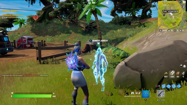 Fortnite Chapter 3 Season 1 arrived with a new map, new locations (and some old ones), and a lot of NPCs to meet. Scattered around the map is The Visitor, The Scientist, Foundation, Ludwig, Brainiac, Mullet Marauder, Cuddle Team Leader, multiple Joneses, and so many more! Some of them offer a weapon to purchase, others have a rift to activate, and a few even offer a prop disguise! One of the Jones NPCs is Bunker Jonesy, the hairy, paranoid shipwrecked version of Jones, easily recognised with his long beard and tattered clothing. Finding and interacting with him can get you a special weapon, and is part of a quest during Winterfest 2021. Find out where to find him below.