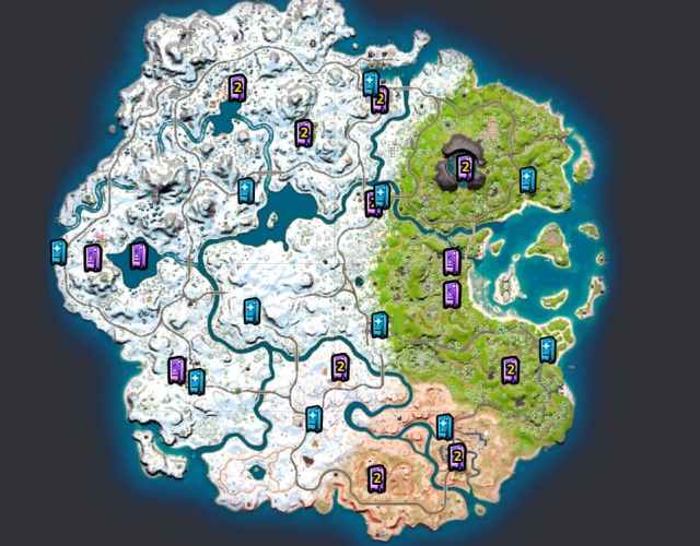 Image Via Fortnite.GG | Location of all Weapon-O-Matic and Mending Machines