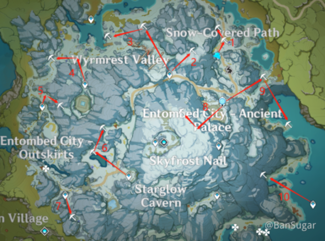 Starsilver is available in abundant in Dragonspine, however, farming each and every starsilver is a daunting task. But, thanks to BanSugar(Verified Content Creator – Genshin Impact) we have a great route, that players can use to farm around seventy starsilver in one run.