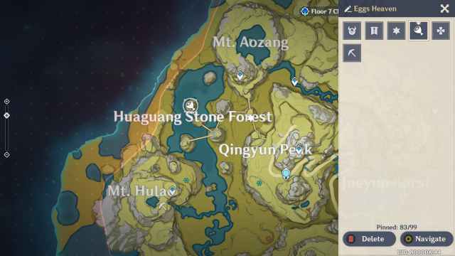 Teleport to Mt. Aozang waypoint. From there glide your way through the stone forest to the above marked location.