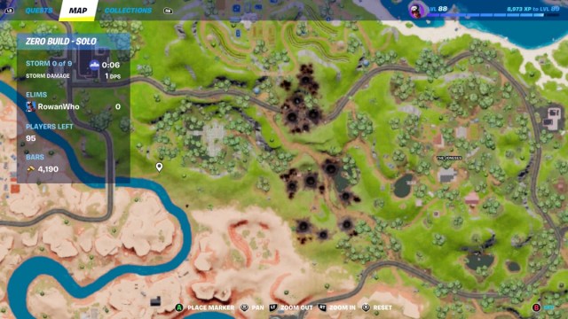 Fortnite’s 8th week of season quests includes one particular challenge which asks players to complete an objective at any of the bomb clusters around the map. These bomb clusters are the devastation left behind after the battles in each of the areas. If you remember where each battle took place, you can work out the best places to go. If not, let us help you find each bomb cluster in the Fortnite map and finish the season quest quickly and easily.