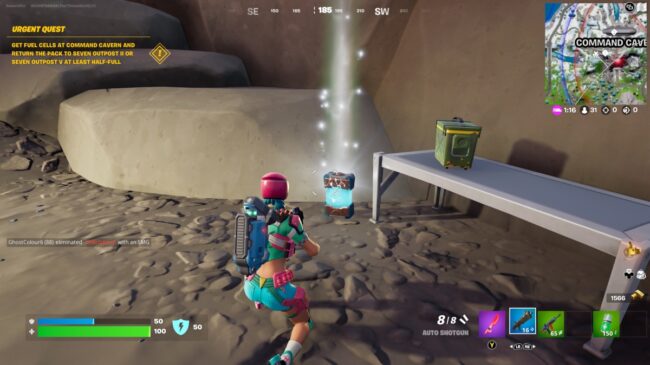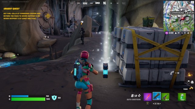Once you have found the backpack, make your way to Command Cavern to pick up two fuel cells. Use a Rift or a Helicopter to get there quickly! Find the Fuel Cells dotted around Command Cavern. The easiest to find are just inside the entrance to Command Cavern that has the long river and tunnel. Enter and head right, there is one just inside the entrance: