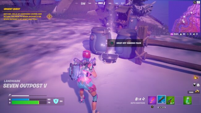 Once you have both fuel cells, make your way quickly back to Outpost V. You must get back before the fuel cells run below 50%. Drop off the Charge Pack at one of three places within the Outpost: