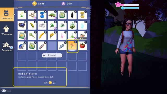 Once you forage a Red Bell Flowers in Disney Dreamlight Valley, it will get added to your inventory.