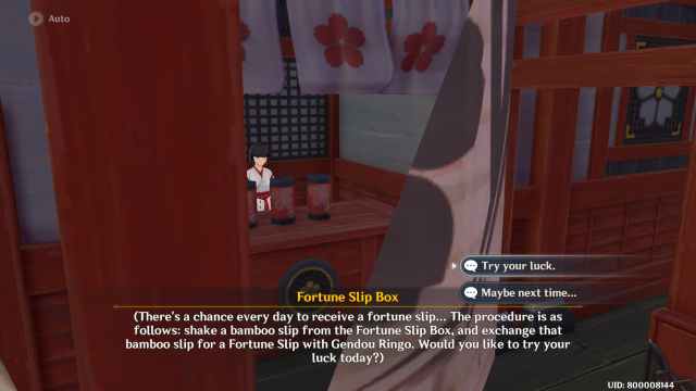 To use a Fortune Slip in Genshin Impact, players have to shake the bamboo slip from the Bamboo Slip Box and then exchange that bamboo slip for a Fortune Slip with Gendou Ringo.