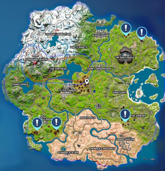 Three saplings must be planted at three different craters. These bomb craters are in clusters around the map in areas where battles have previously taken place. There are two clusters near Greasy Grove, two north of The Daily Bugle, and one near The Joneses: