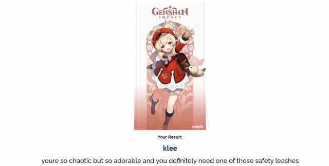 I personally took which Genshin Impact character you are? quiz and what I got based on my answers was Klee. No, I don’t like saying Da da daaa, neither I am a small Pyro terrorist. But, yeah I am a chaotic person. So that’s understandable.