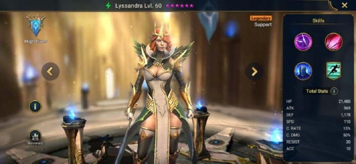 Lyssandra is a Spirit affinity Legendary from the High Elves faction under the Telerians army. Being a Spirit affinity Legendary in addition to being a Support type warrior, Lyssandra proves to be very effective against enemies with affinity. She is known for being especially useful during the mid-late game.