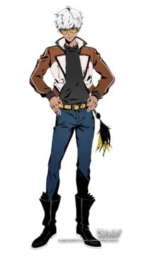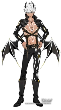 Mammon possesses yellow and blue gradient eyes, messy white hair, and bronze skin. He wears gold stud piercings on his earlobes along with two silver rings on his pinky and ring finger on his right hand. Like his brothers, Mammon too has painted nails, his being white in color.